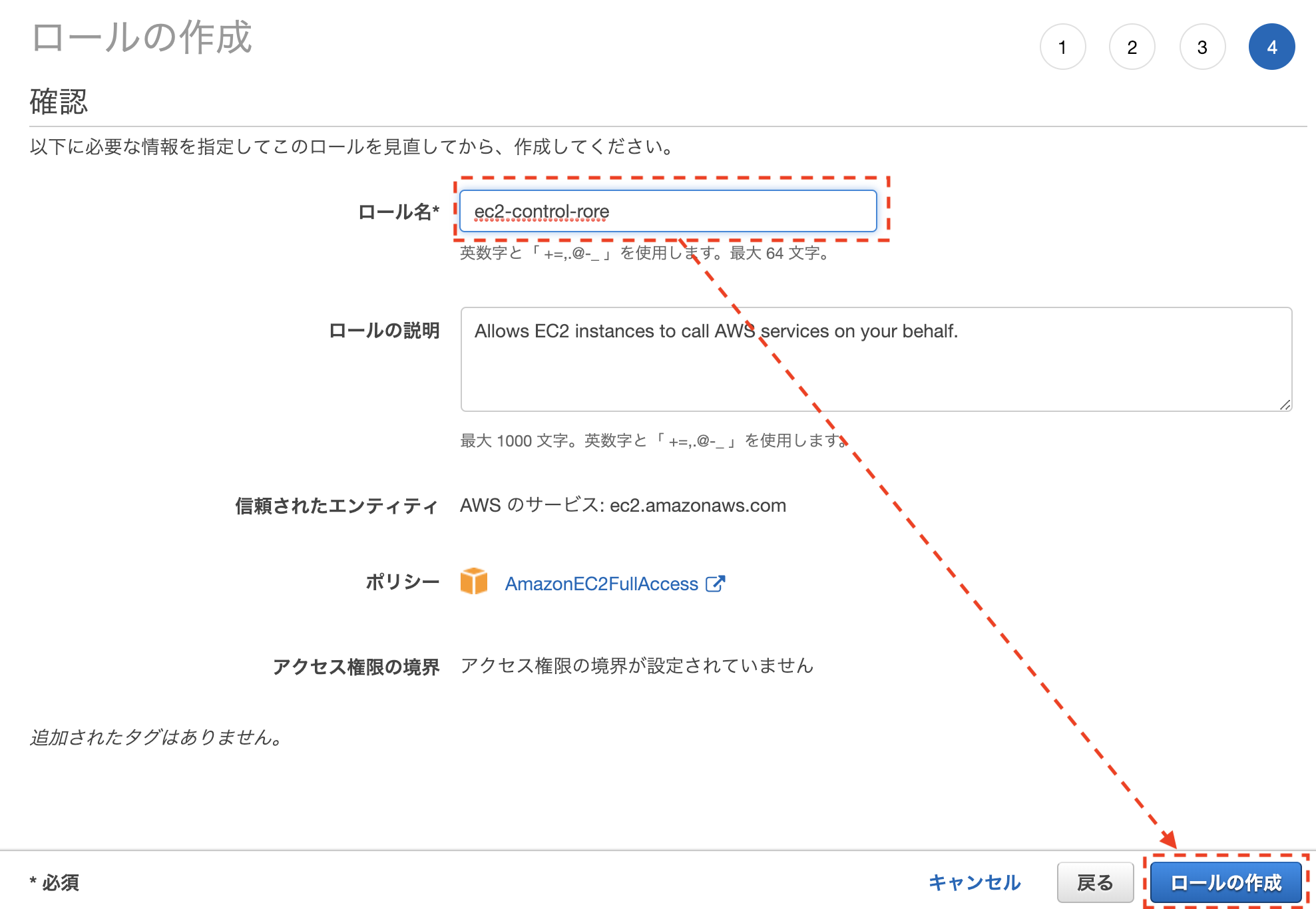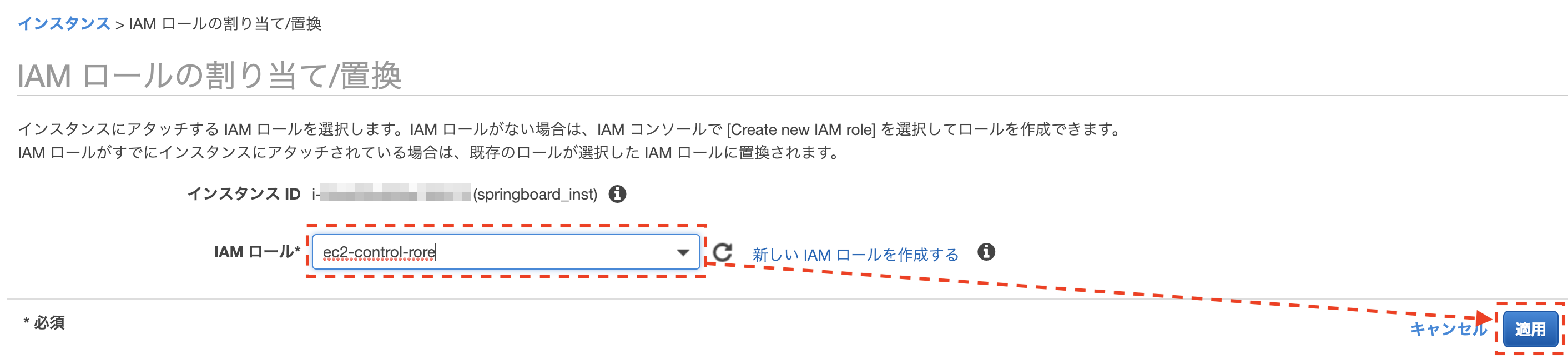 EC2実行用ロールの作成およびEC2インスタンスへの紐付け
