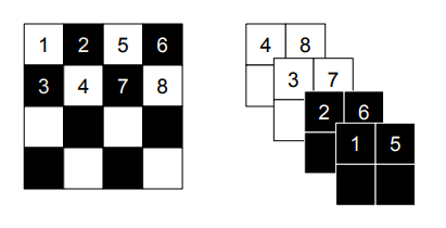 空間的チェッカーボードのマスクは空間的な座標の和が奇数なら1、そうでなければ0である。x座標とy座標のインデックスの和が奇数の箇所は1。