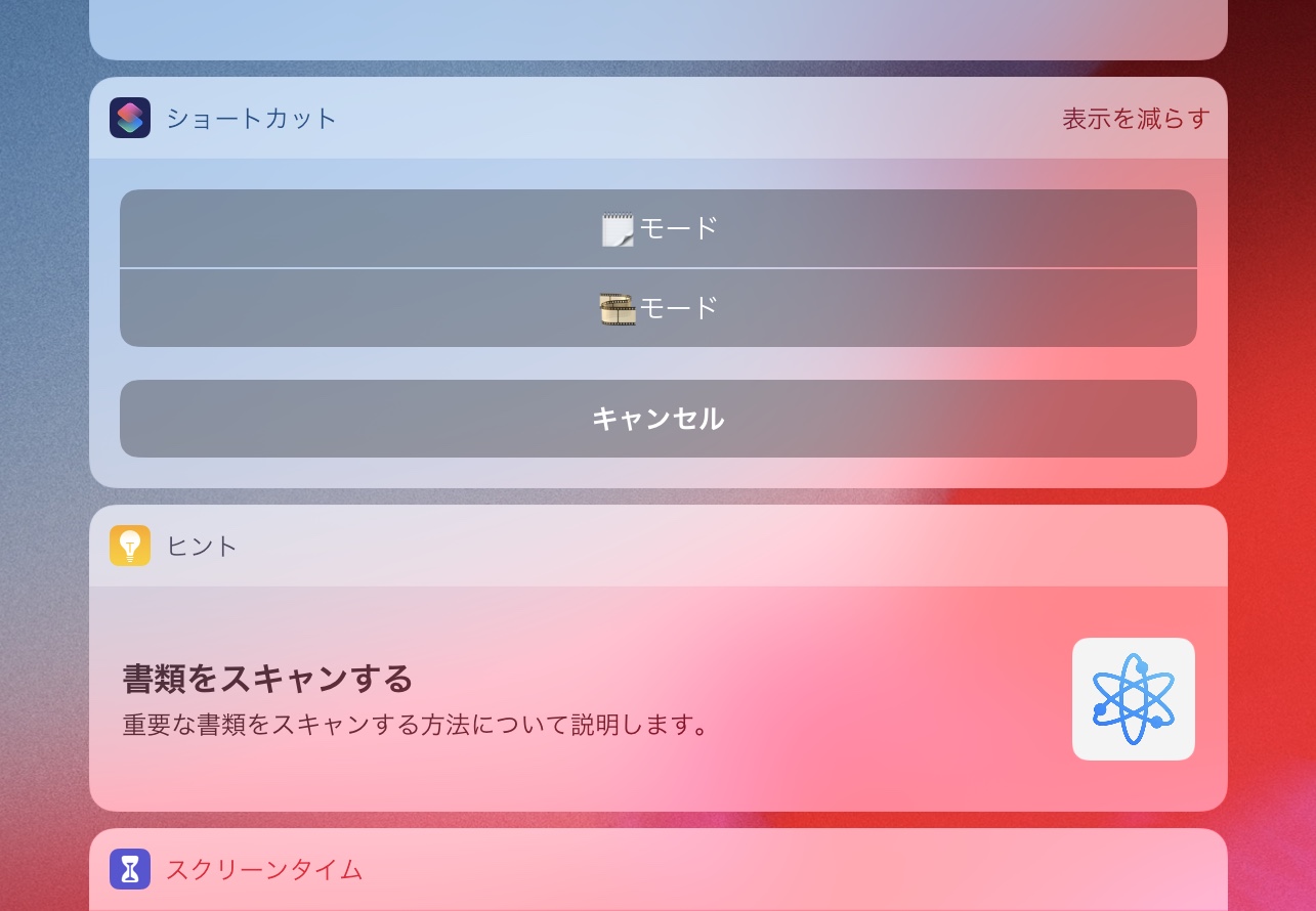 設定で「ウィジェットに追加」にしておくと、ホーム画面を右にスワイプして、このショートカットを呼び出せる。
