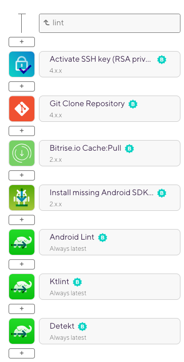 PRやpushで左のbuild-testworkflowが起動し、Bitrise Start Buildで右のlintworkflowをtriggerさせます。lintが完了するのを