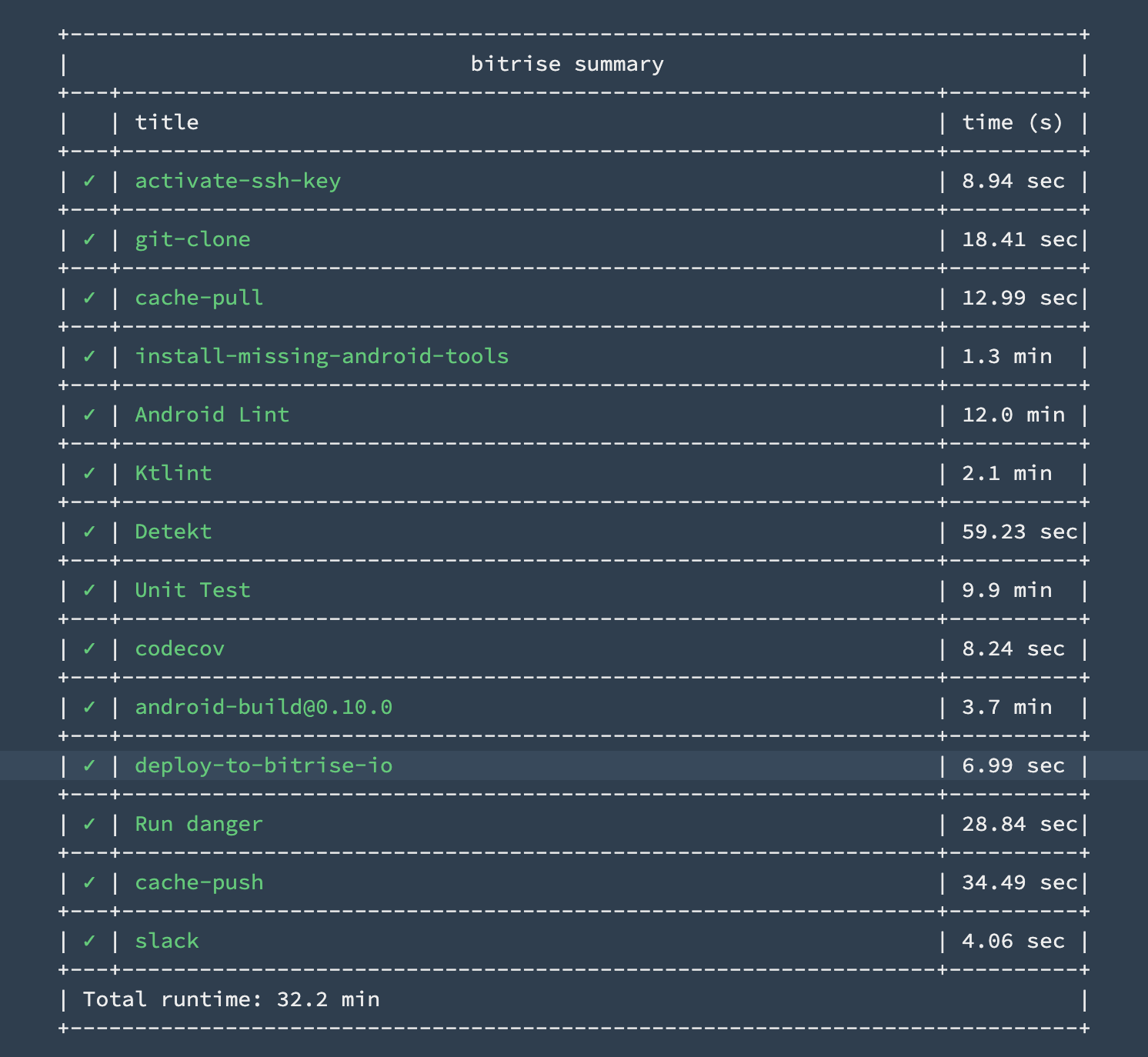 Android LintUnit Testでかなり時間がかかっていることがわかります。また、これら2つよりは短いものの、