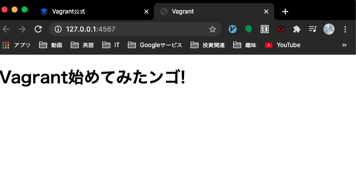 $ ^C ==> default: Halting Vagrant share!もうURLを再読み込みしてもページが見れなくなっているはずです!