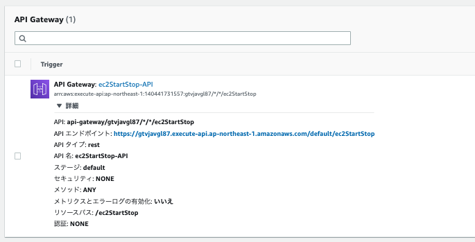 作成したAPI GatewayのAPIエンドポイントをメモしておきます。