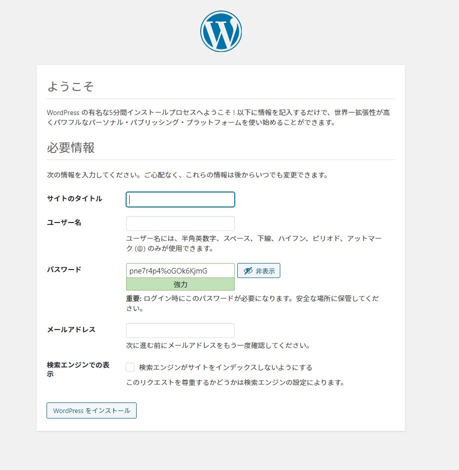 外部に公開しない練習・検証環境であれば、「検索エンジンがサイトをインデックスしないようする」にチェックを入れておくと良いでしょう。