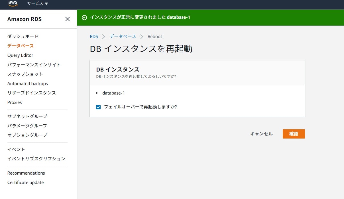 An error occurred (KMSKeyNotAccessibleFault)というエラーが表示される。本作業後、Lambdaを実行することでRDSスナップショットがS3へエクスポートされる。
