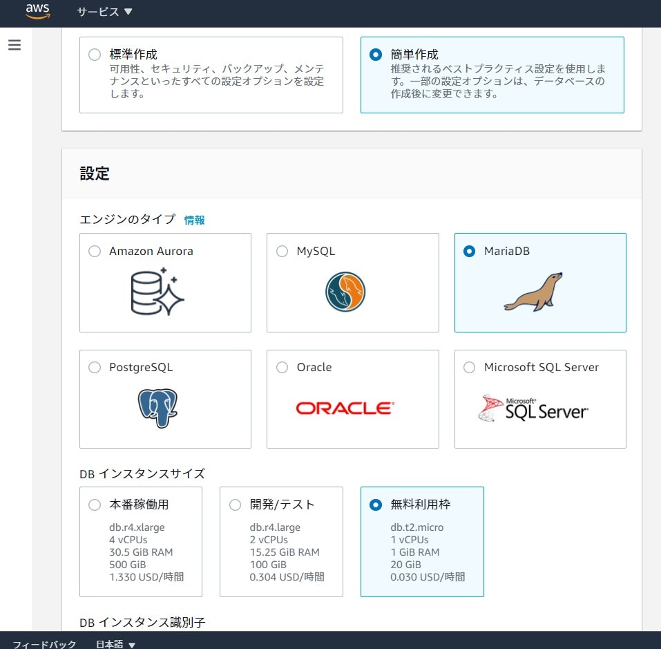 (無料アカウント用なのか、既にインスタンスが生成されていました。)