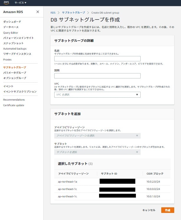 「test-db」という名前にしておきます。※名前は各々ご自由に