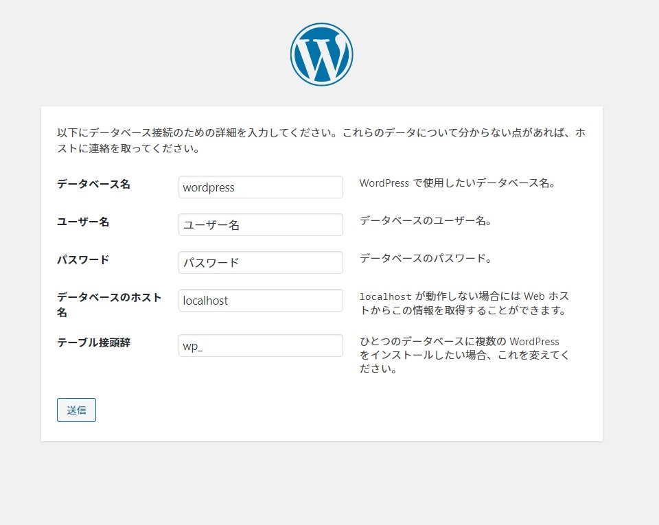 データベースのホスト名とテーブル接頭辞はそのままで大丈夫です。