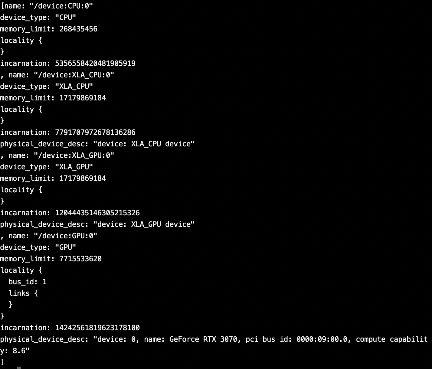 from tensorflow.python.client import device_lib device_lib.list_local_devices()GPUの文言がちらほら。