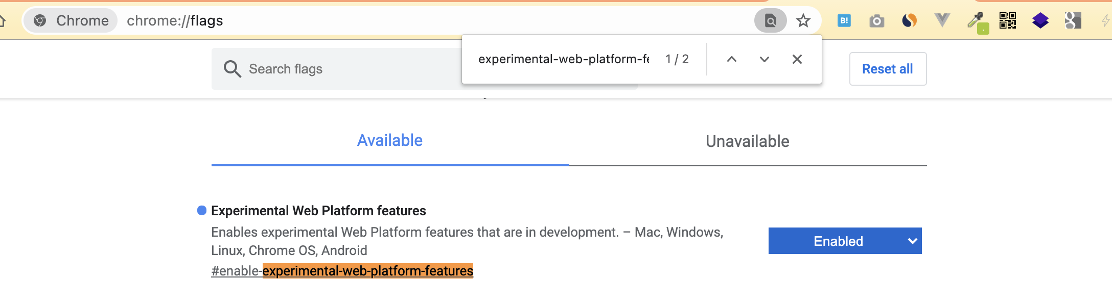 chrome://flags/にアドレスバーからアクセスしま、#experimental-web-platform-featuresのフラグをenableにしましょう。サーバー側、オリジンの申請