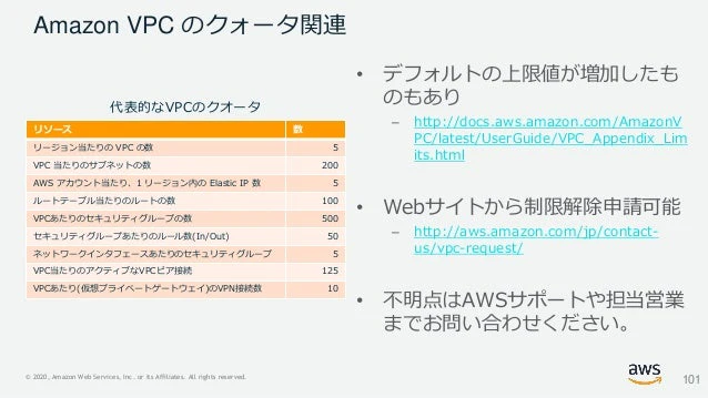 また、複数のVPCとピアリングすることがデフォルトで50まで出来ます注意しないといけないこと