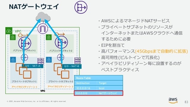 - NAT Gatewayを介して外部からの通信を可能するが、サブネットからは通信を不可