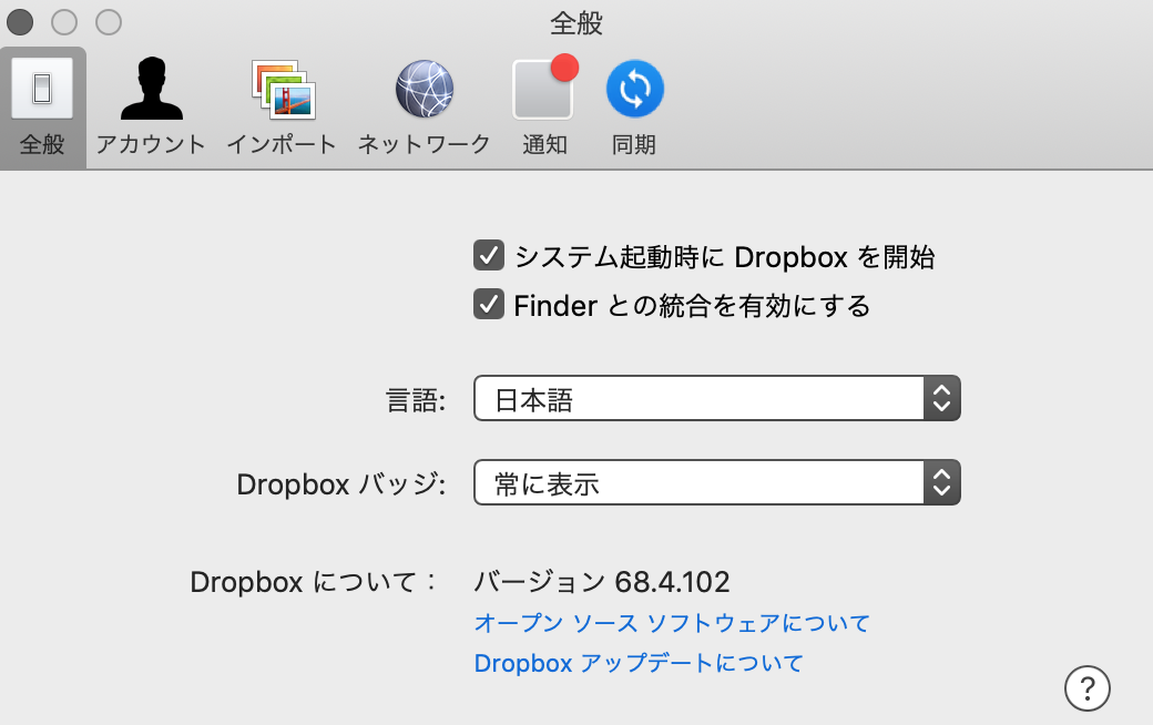 Mac版Dropboxアプリインストール