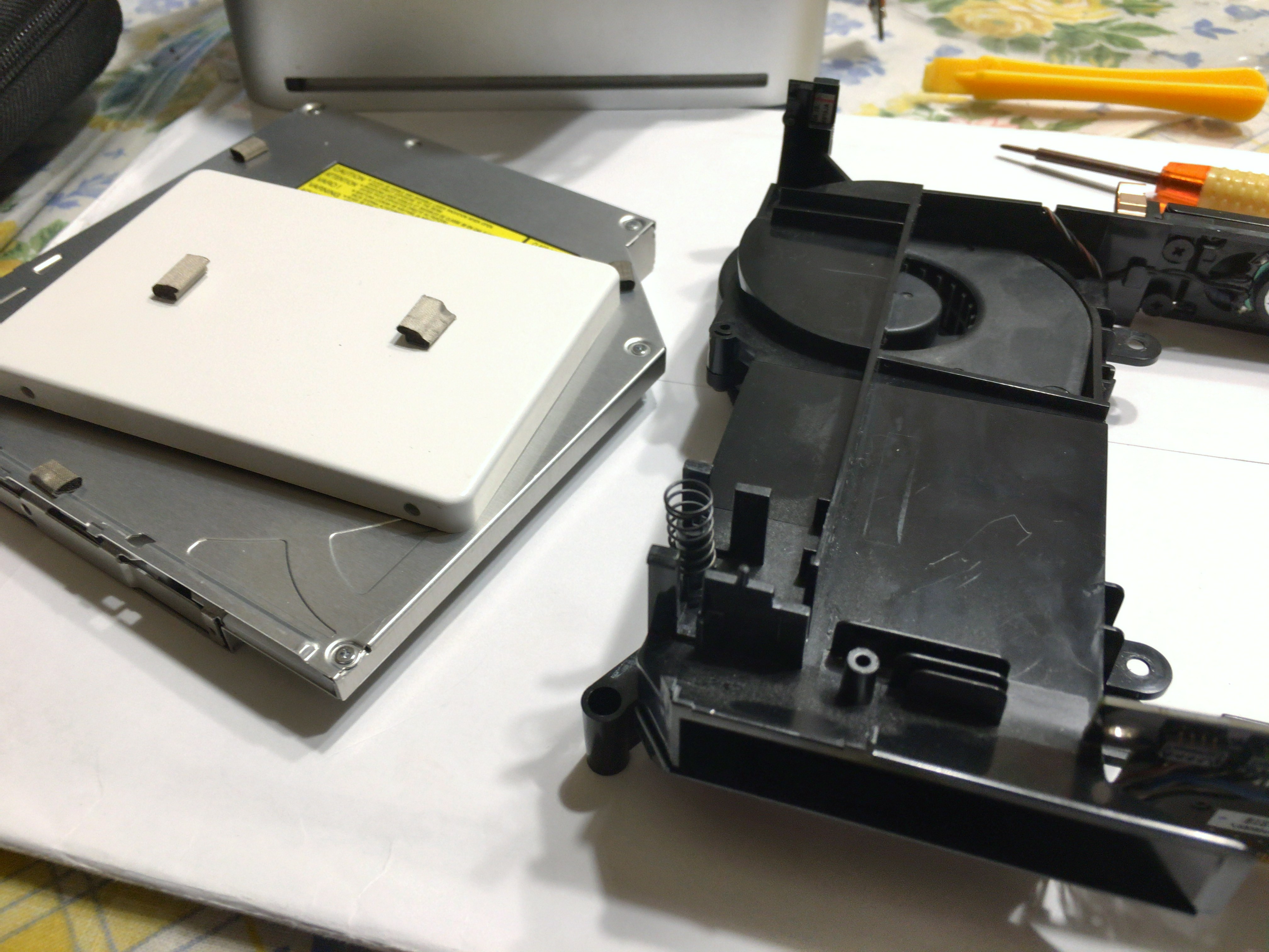 光学ドライブとSSDとファンが乗っている部分をシステムボードがら分離します。