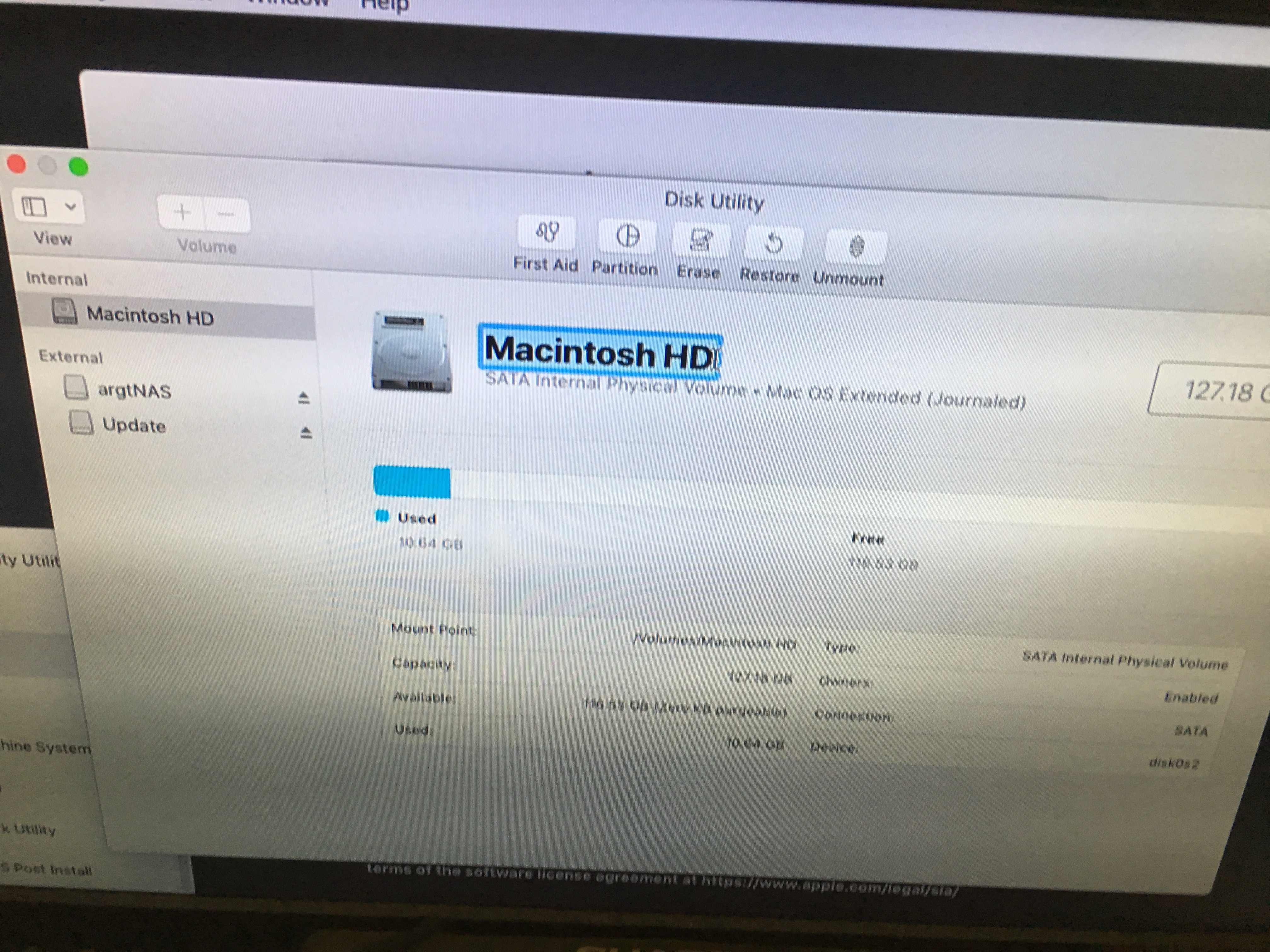 ~# diskutil repairDisk /dev/disk0でSSDを修復。