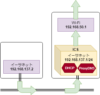 - ホストOS側でDHCPサーバを稼働させ、「Hyper-V Internal with WinNAT」ネットワークに所属するゲストOSがDHCPでIPv4設定できるようにする