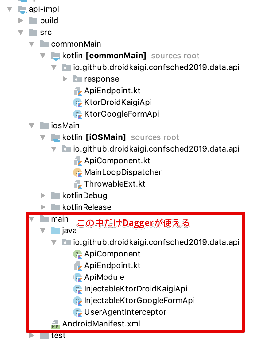 このあたり、自分はAndroid版の機能をレビュー、実装している間に、コントリビューターの方々がやっていただけたものになります。 @kikuchy さんが特にこの基盤作りをメインにやってくれていました。他にもiOSの有名な方々など、さまざまな方が開発に参加していただけました。DroidKaigiではAndroid版とiOS版をリリースしています。そこで培った知見を公開しておこうと思います。