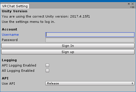 - 「VRChat Settings」というウィンドウが開くので、メールアドレスとパスワードを入力して Sign In