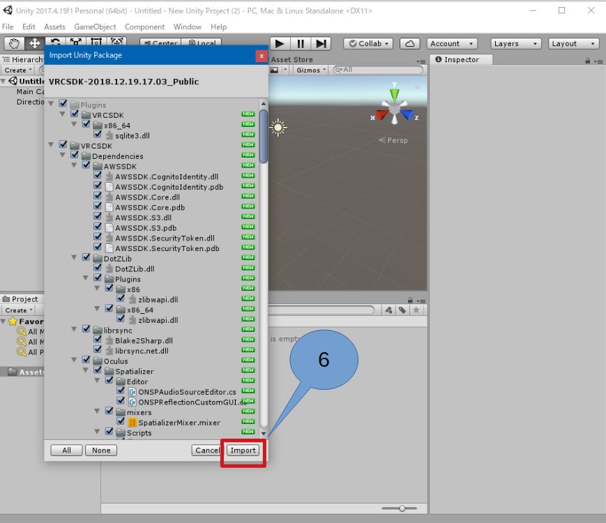 - 「Import Unity Package」というダイアログが表示されるので、そのまま右下の「Import」を押して、完了するまで待ちます。