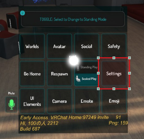 - 上の VRChat SDK メニューから、 Setting を選択します。