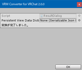- 「VRM Converter for VRChat」というダイアログが開くので、右下の 複製して変換 ボタンを押します。