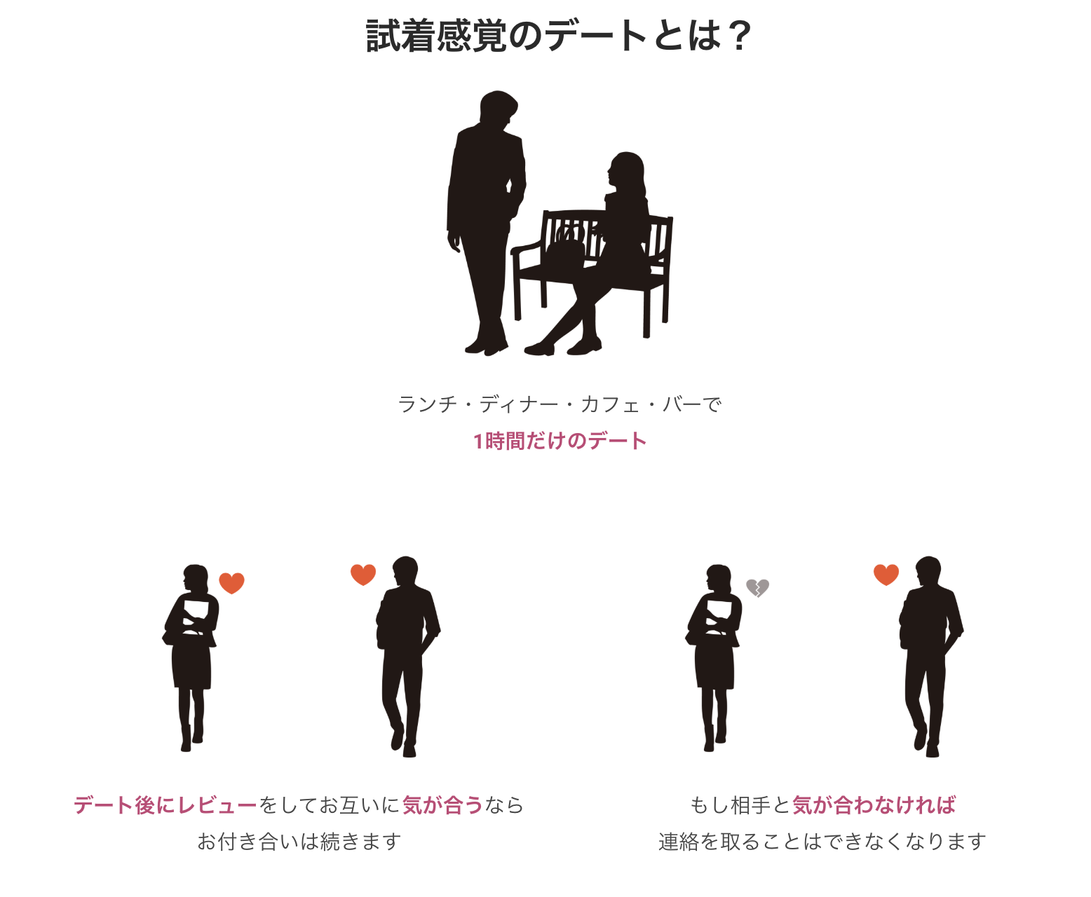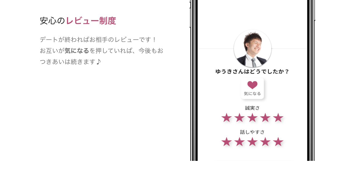 デート後に、お互いが気になるボタンを押していれば連絡はとりあうことができ、片方でも押さなければ連絡はとれなくなるといったシステムです。