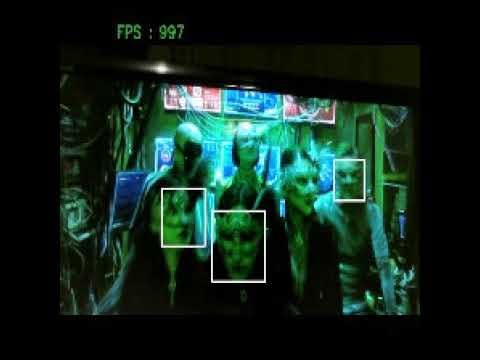 fpsを計測して、動画に貼り付けます。while True: timer = cv2.getTickCount() ret, frame = cap.read() sleep(s) fps = cv2.getTickFrequency() / (cv2.getTickCount() - timer); # Display FPS on frame cv2.putText(frame, "FPS : " + str(int(1000*fps)), (100,50), cv2.FONT_HERSHEY_SIMPLEX, 0.75, (50,170,50), 2);取得した画像をグレースケールに変換して、それに基づいて顔検出を行います。