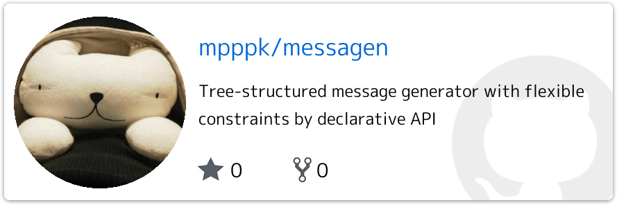 messagenはyamlかgolangで定義したテンプレートと制約に基づいてメッセージを生成するツールです。