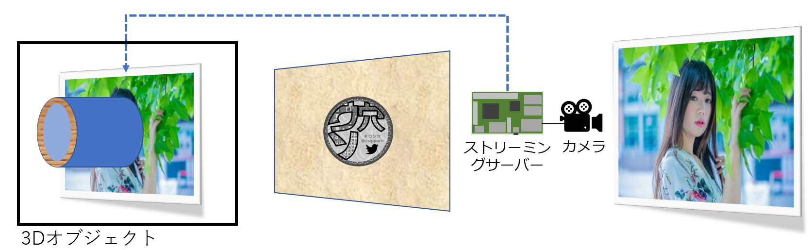- 配信した映像をテクスチャとした3Dオブジェクトを作成します。
