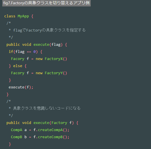・そもそも、存在しないFactoryを呼び出すようなことにはならないか?フラグで生成するFactoryを判定する例