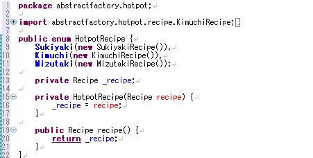 EnumであるHotpotTypeでRecipe(Factoryクラス)を指定して生成しています。