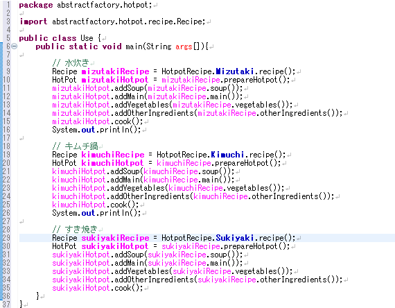 https://github.com/TakumiKondo/designpattern/tree/master/src/abstractfactory/hotpot