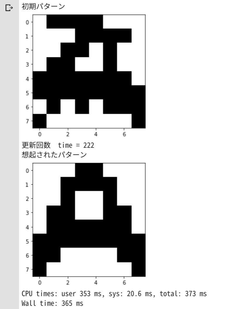 連想記憶をPythonで実装しました。googleアカウントをお持ちであれば、こちら(Google Colab)からすぐに実行できます。