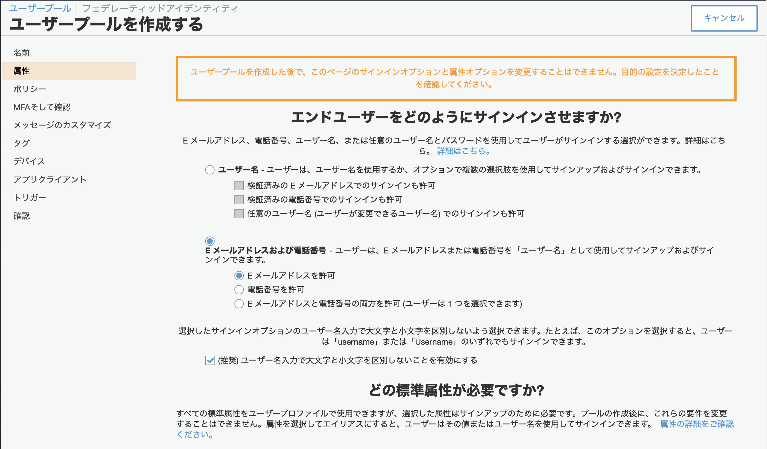 例としてs3-devというバケットを作成します。デフォルトのまま次へ。