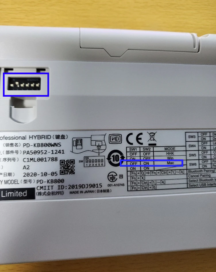 キーボード背面にある2つ目のDIPスイッチをONに設定しておく
