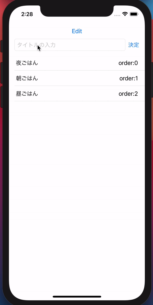 UITableViewCellをロングタップするとDrag&Dropで並び替えができるようになります。