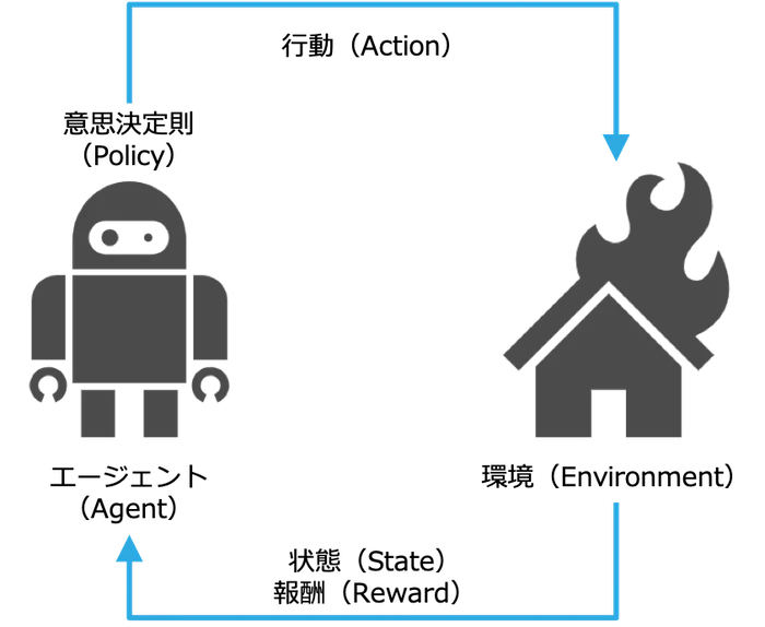 強化学習とは人工知能の一分野である機械学習の中でも意思決定のための学習を行う手法です。ある環境におかれたエージェント(知的活動を行う対象)が「どのように意思決定をして行動すれば目標を達成することができるのか」ということを定式化して学習を行います。現実世界では、将棋や囲碁のようなゲームや自動運転車、ロボット制御、化学物質の設計などに応用されています。
